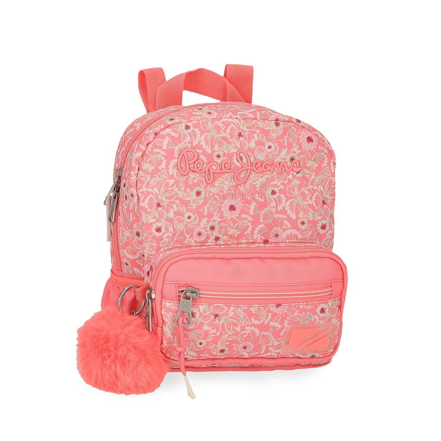 Backpack 23cm from the Nahid collection by Pepe Jeans: charming design with spring flowers in shades of pink, ideal for feminine girls who love the color pink.