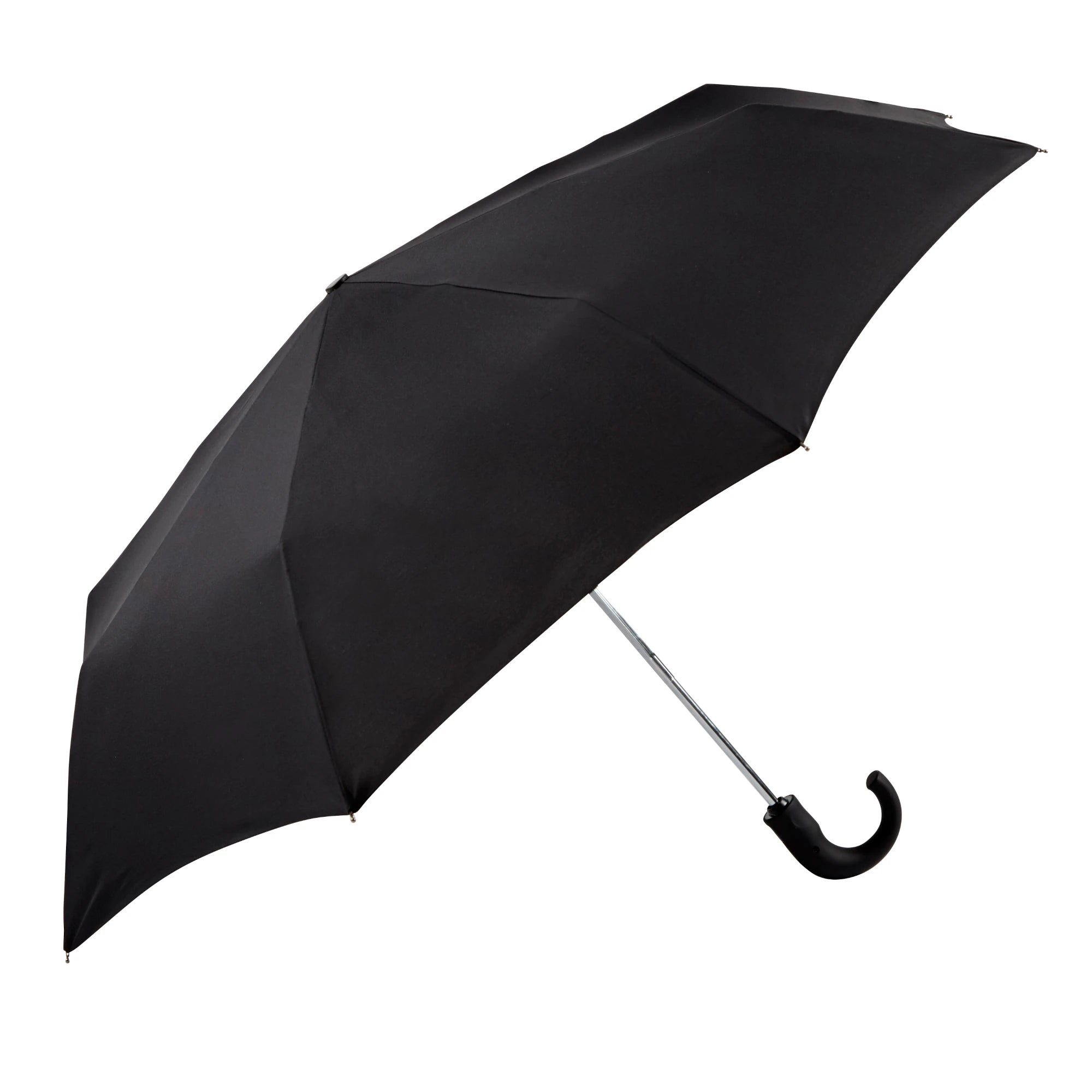 Guarda-chuva desdobrável preto com cabo curvo no tamanho S. Tem botão «Open&Close» para abrir e fechar automaticamente.